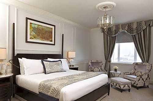 This room features a small reading nook accented with original art, a private bathroom with Italian marble vanities, and a walk-in showers or soaking tubs with shower combination. Bedding options include a choice of one king or two double beds, based on availability upon check-in.
